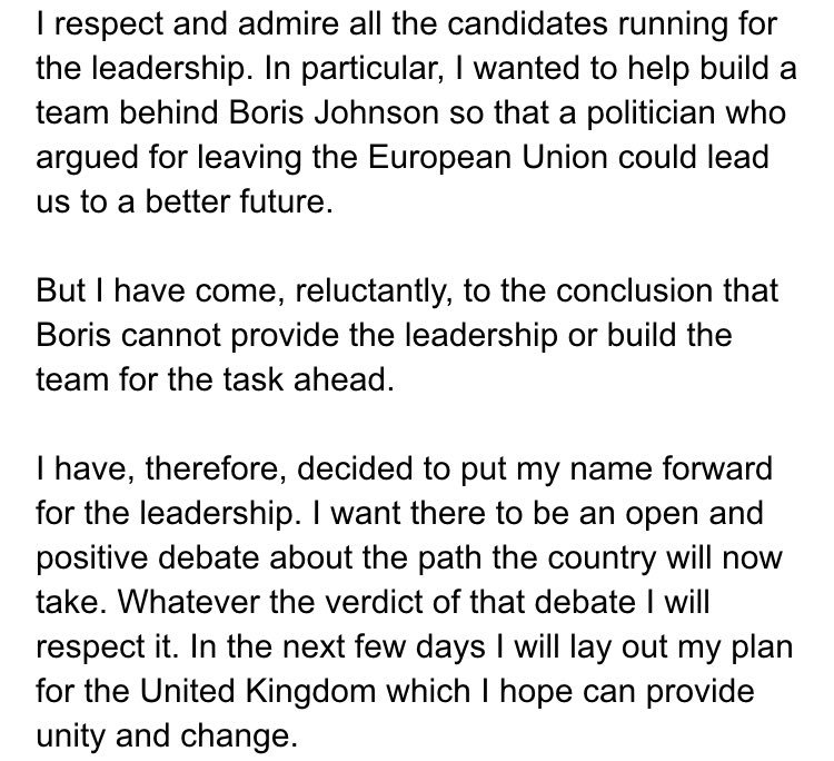 @faisalislam Was it on Sky that Gove said he wouldn't run as he was unsuitable? We all need to be reminded of that clip...