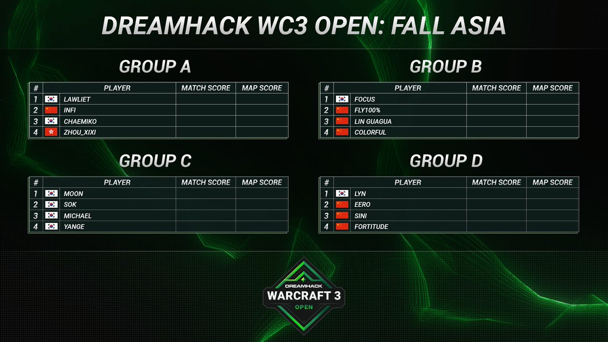 Without further ado 👏 Here are the groups for the DreamHack Warcraft III Open: Fall season! 🤩 ℹ️ https://pro.eslgaming.com/tour/2020/09/esl-pro-tour-warcraft-lll-fall-season/ … #WC3 #ESLProTour pic.twitter.com/UVeNUetq31