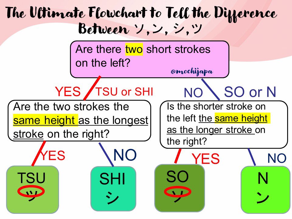 I made a meme and a flowchart about the difference between the 4 katakana,ソ,ン, シ,ツ👀 “Wait...is that so? n? shi? tsu? I’m so confused...!” These are a little bit confusing, but not super difficult. Don’t hate katakana plz🥺💕 fyi ✅損失=sonshitsu= loss #japanese #meme https://twitter.com/jisho/status/1348675548457754626 …pic.twitter.com/XUh0xucn7z