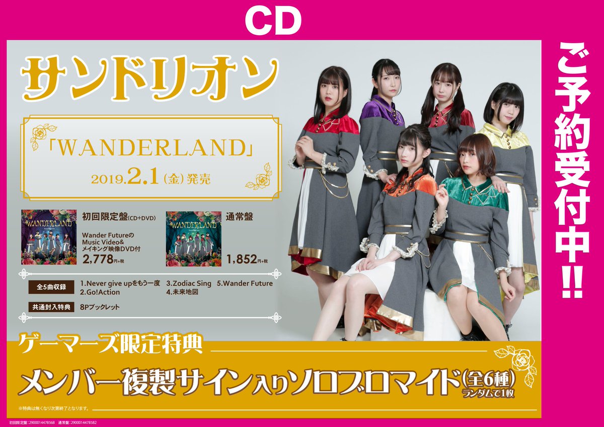 #サンドリオン 2nd ミニアルバム「WANDERLAND」のリリイベ応募が1月21日(月)必着締切です!