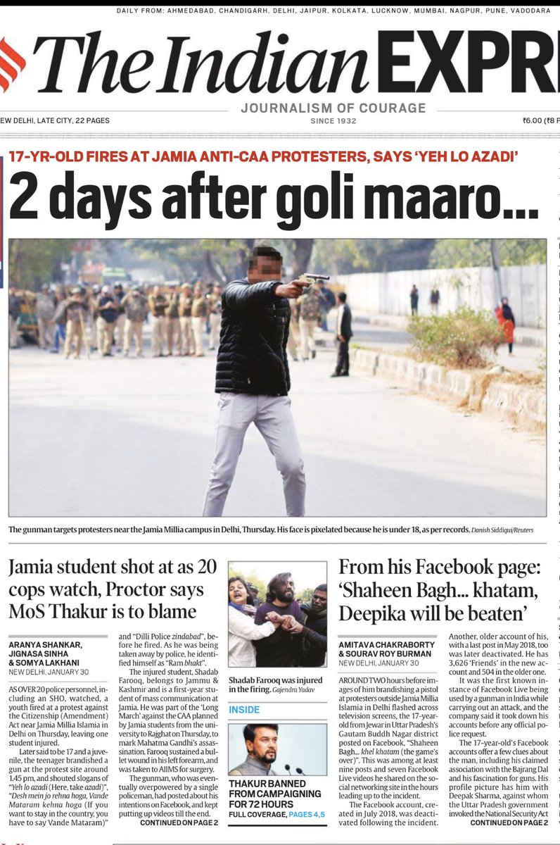 "I am also a BJP supporter but for me country comes first, party and its leaders are secondary." Obsessed with guns, Hindu supremacy, alarming hatred for the 'other', association with far-right extremists. Two Facebook profiles tell a storyhttps://indianexpress.com/article/india/jamia-protest-shooting-facebook-page-shaheen-bagh-6243473/ …