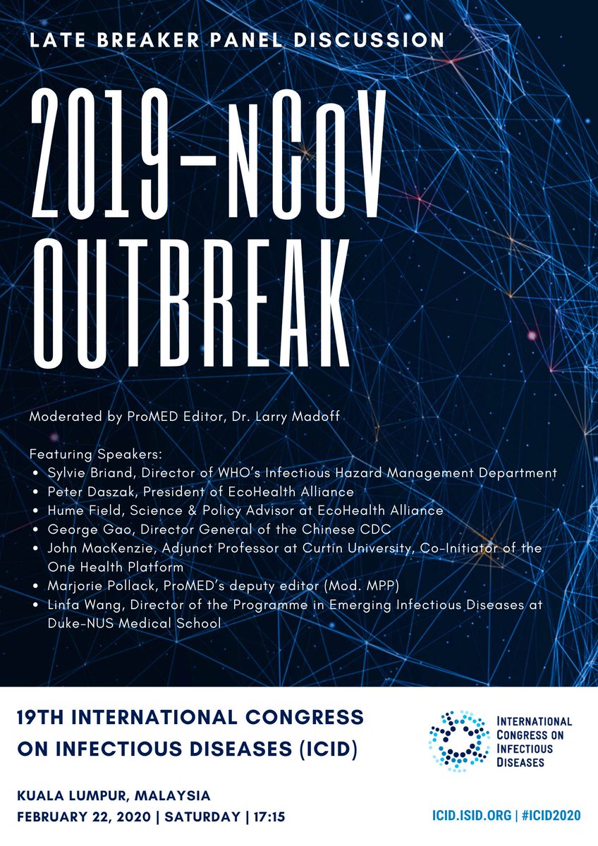 #2019nCoV panel discussion at#ICID2020. Will bring relevant learning and insights from my SARS response and research roles. Hopefully the epi curve will be all downhill by then..@lmadoff@SCBriand@PeterDaszak@ModMPP@WHO@EcoHealthNYChttps://twitter.com/ISID_org/status/1223357820549992449 …