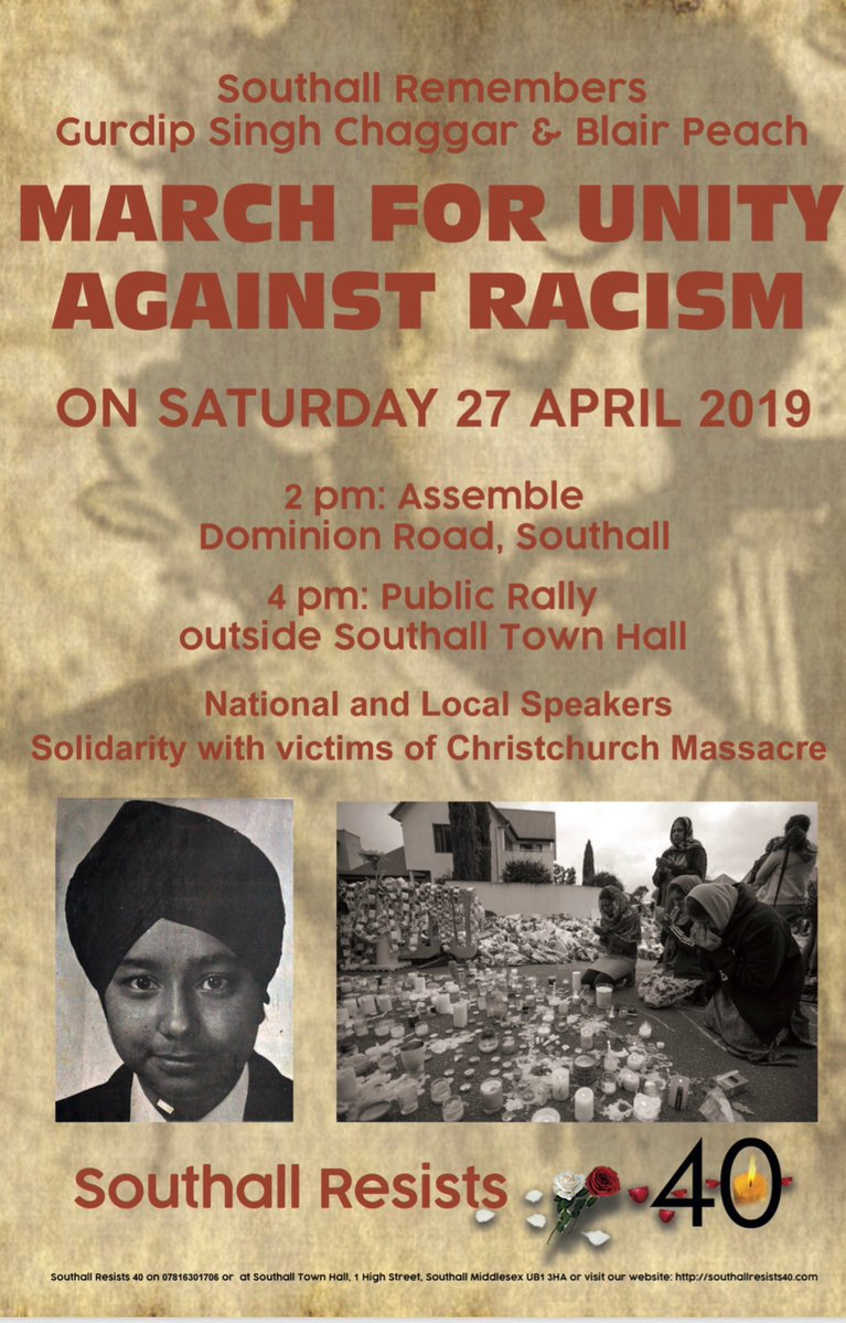 On 23rd April 1979, St George's Day, the community's self defence against fascists was met with brutal policing. Amongst the hundreds injured by police, Clarence Baker ended up in a coma. Blair Peach ended up dead. 40 years later we remember. March with us. #SouthallResistspic.twitter.com/6dRx9gjuOL