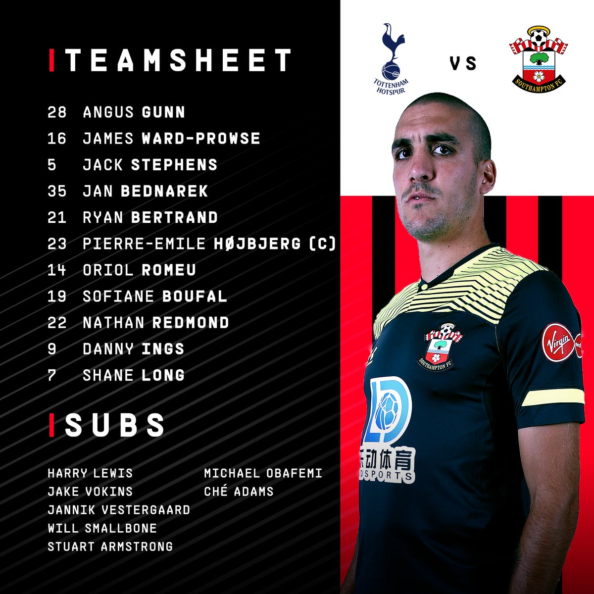 Here’s the #SaintsFC side that will face#THFC tonight:pic.twitter.com/z1415W3QQc
