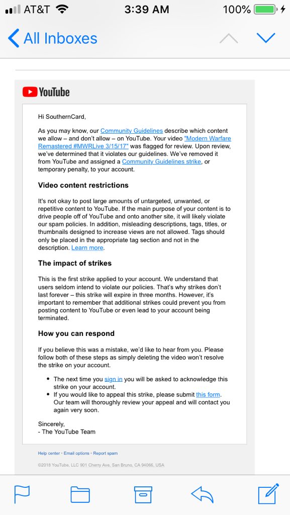@TeamYouTube just another reason I’m leaving your site. Strike on my channel for a video that’s been deleted (I took it down) for 7 months now.