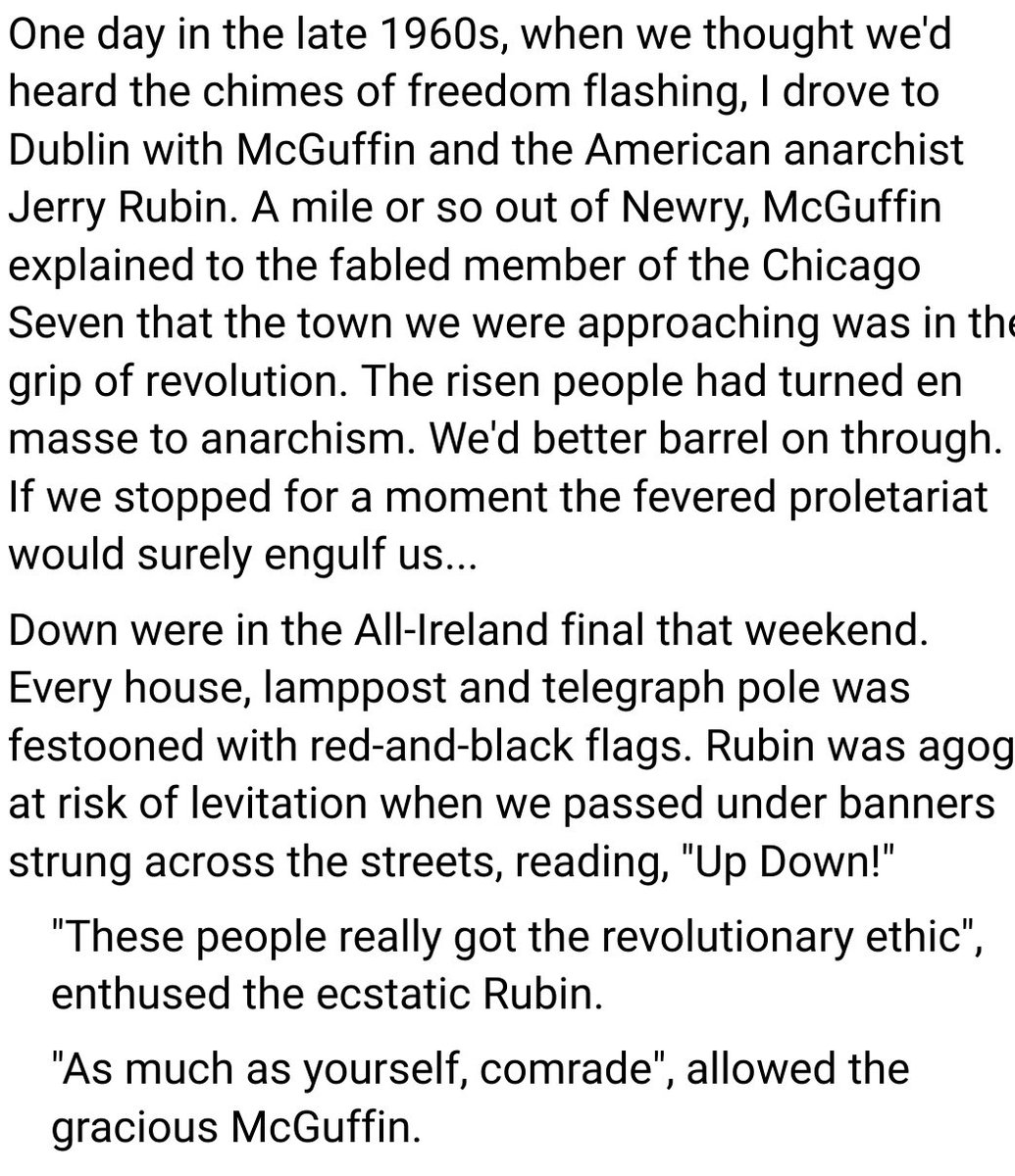 Eamonn McCann on anarchist John McGuffin. I'm reminded of the US comrade whom we convinced that the comrades he met were in the band UB40 'Down' as in County Down & whose county flag is red & blackpic.twitter.com/UjtMbsE3Je