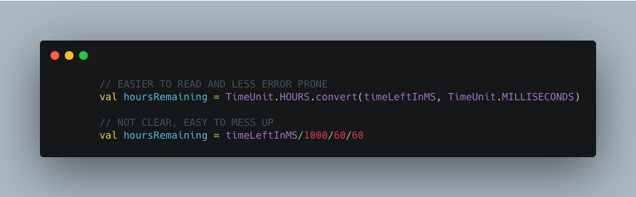I refactored some code this week and made sure to use TimeUnit