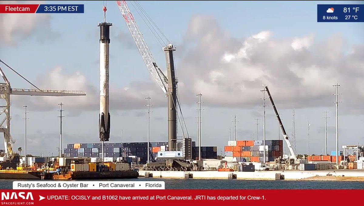 Falcon 9 is about to go horizontal at Port Canaveral.