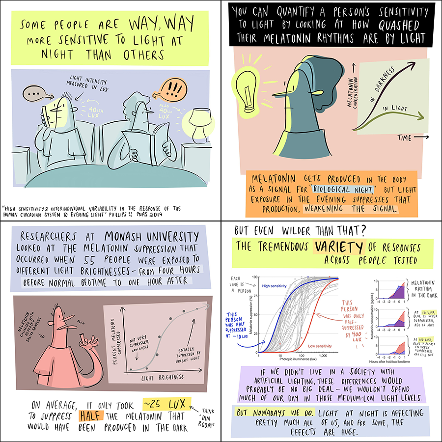 #bodyclock is MUCH more sensitive to light than others'? Read more about it in the new blog post by@elisemcglashan & Parisa Vidafar with cool graphics from@oliviawalch!@circadianumbers@circadian247#ChronoTwitter https://srbr.org/were-all-sensitive-to-light-at-night-but-some-are-much-much-more-sensitive-than-others/ …pic.twitter.com/eeI7vQk0bc
