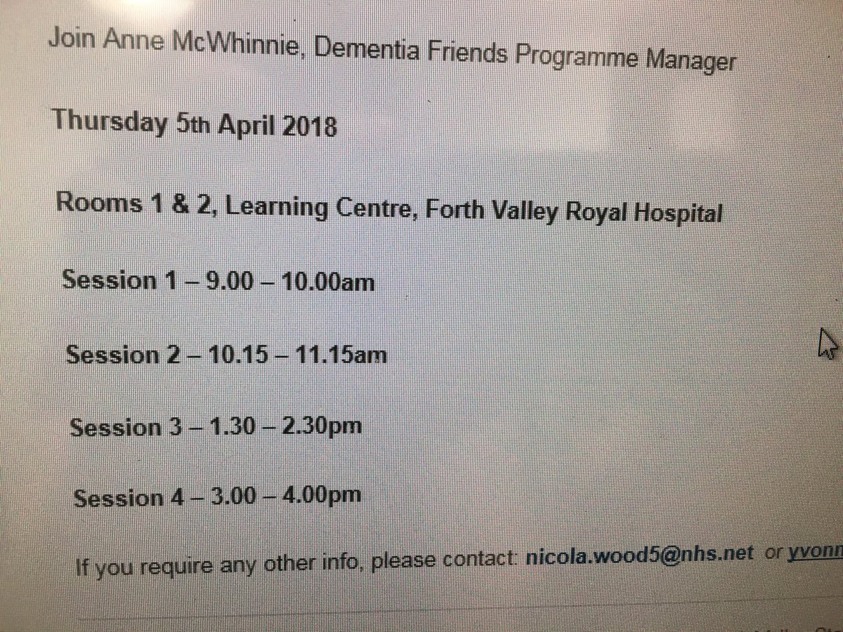 @Yvonnecairns1 who was telling me about#dementia friends sessions on today@NHSForthValley - feel free to drop in@DementiaFriends@alzscot@NicolaWood5pic.twitter.com/94wDasxc7v