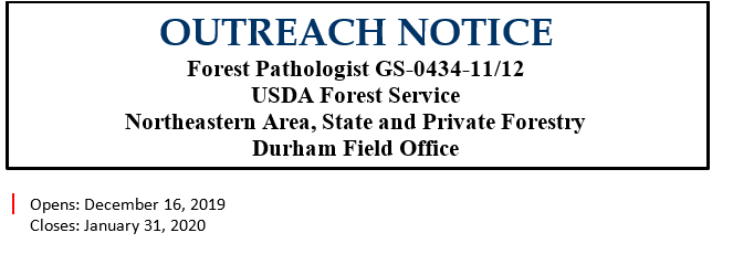 Outreatch notice for upcoming Forest Pathologist position in Durham, NH-opens today!pic.twitter.com/goIqJ5vmN6