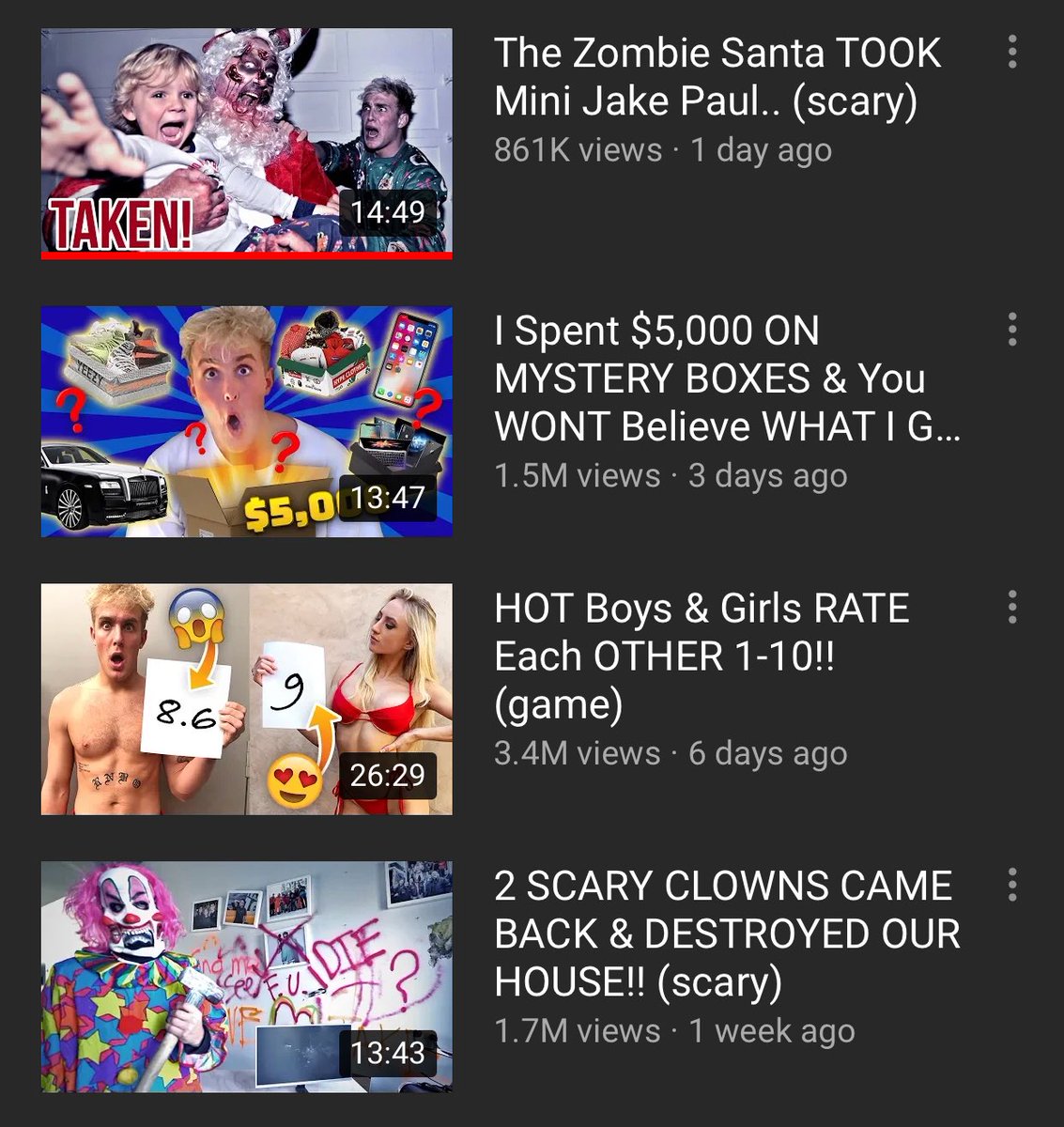 Child abduction horror, gambling scams, sexy clickbait, and more nightmare fuel from Jake Paul children’s programming. He’s had a busy week. pic.twitter.com/Ni2ki6IL9z