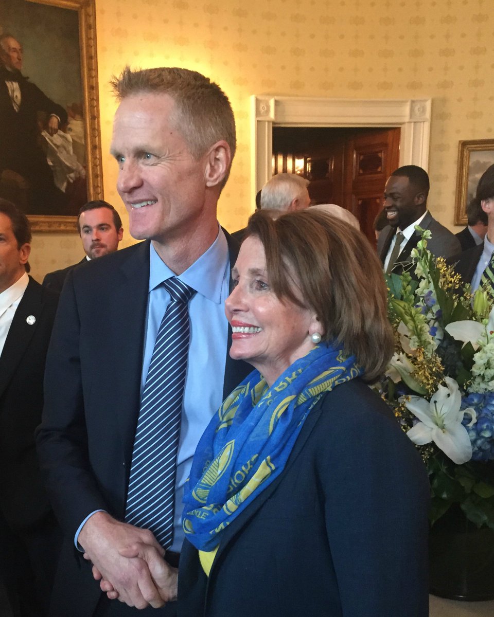 Dubs scarf is awesome indeed @MariaLiaCalvo. ps Steph Curry took the photo of Pelosi and Kerrpic.twitter.com/t4wfbX34J1