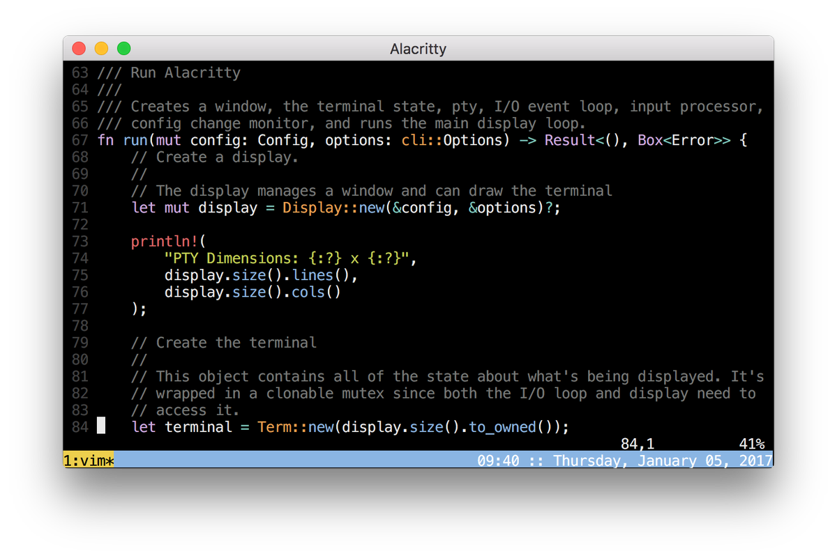 Announcing Alacritty, a GPU-accelerated terminal emulator. http://buff.ly/2jMtM9t This looks like a sweet terminal w/ right goals.