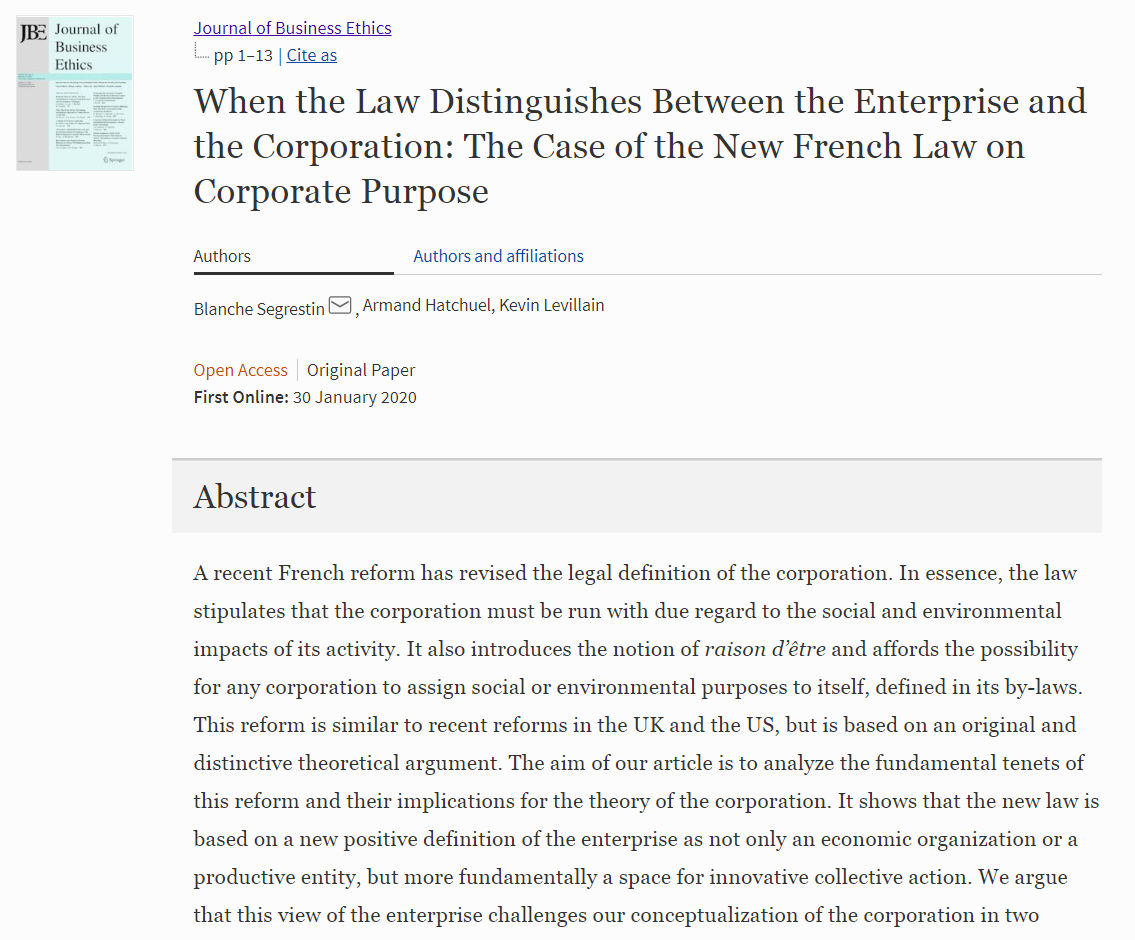 #Law Distinguishes Between the Enterprise and the Corporation: The Case of the New French Law on Corporate Purpose http://ow.ly/DPBu30qeuds pic.twitter.com/yUyHqE2zgf
