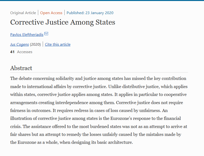 "Corrective Justice Among States" (Pavlos Eleftheriadis)