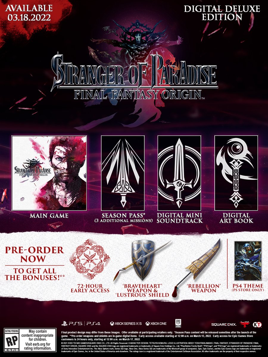 #StrangerOfParadise#FinalFantasy Origin Digital Deluxe Edition contains: