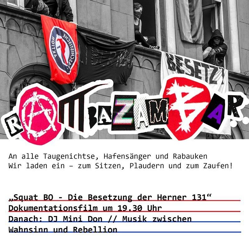 #Bochum zum dritten Mal. Eine damals entstandene Dokumentation feiert nun Premiere im Rahmen der Rambazambar. Wann? Freitag, den 10.01.20 ab 19 Uhr (Filmbeginn 19:30 Uhr) Wo? Provisorium, Dorstener Str 17#squatbo#herner131#nonazisbopic.twitter.com/D1UtHSsC75