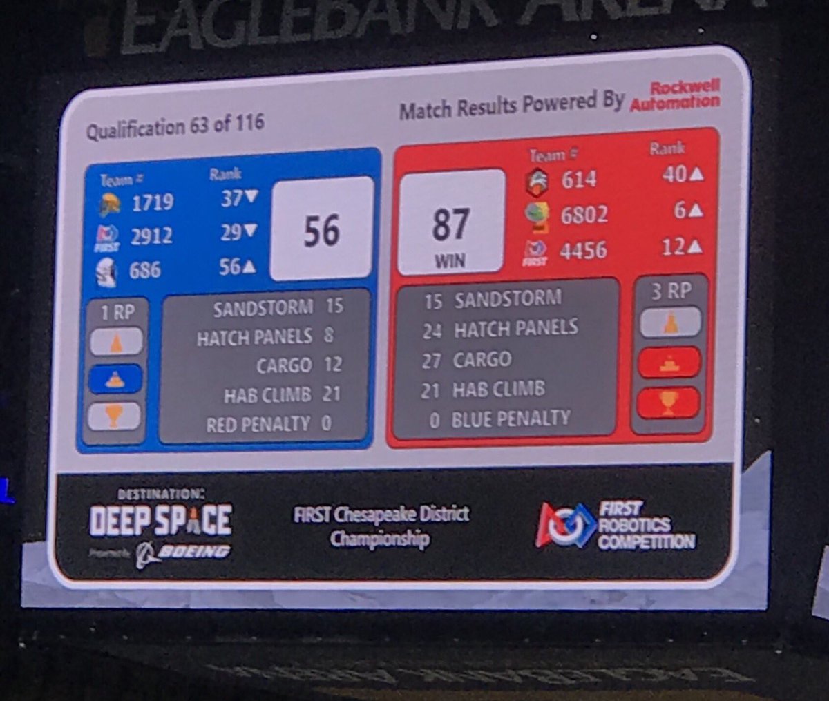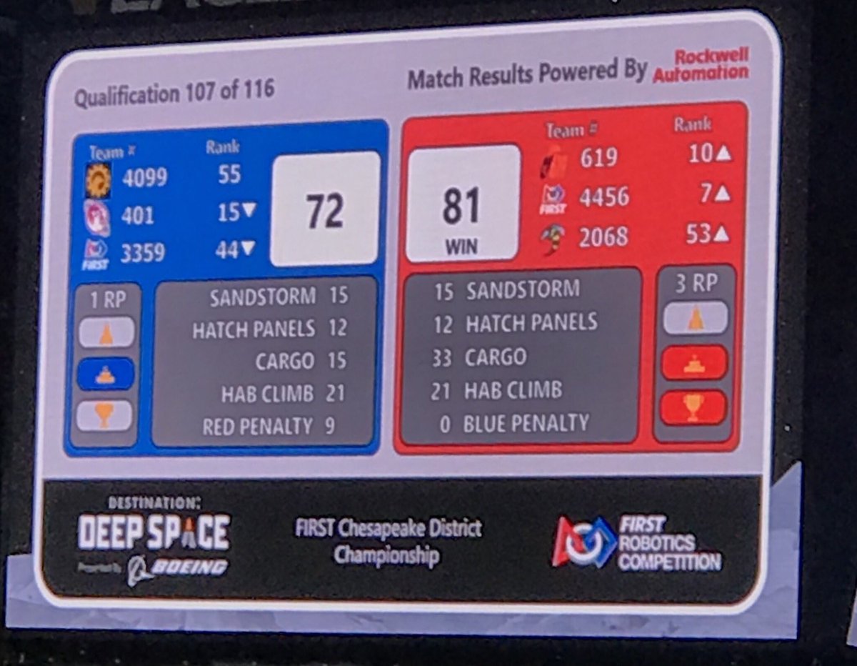 @Team614Robotics and@FRC6802 for a great match! Next match 71!#frc#districtchampionshipspic.twitter.com/cE8VSwOBWI