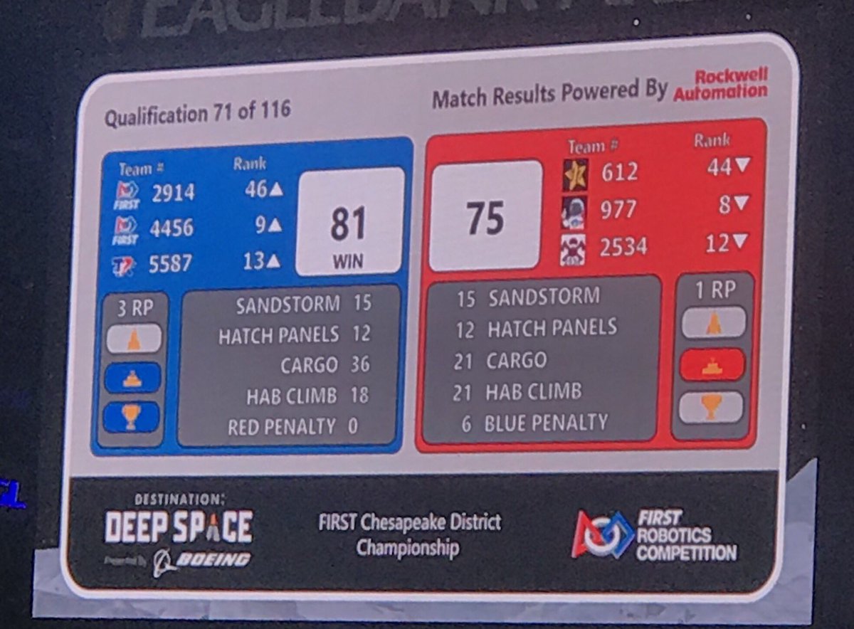 A great win for Match 71! The Mech Cadets advance to 9th place! Next match: 80!!pic.twitter.com/P5df0G9Nno
