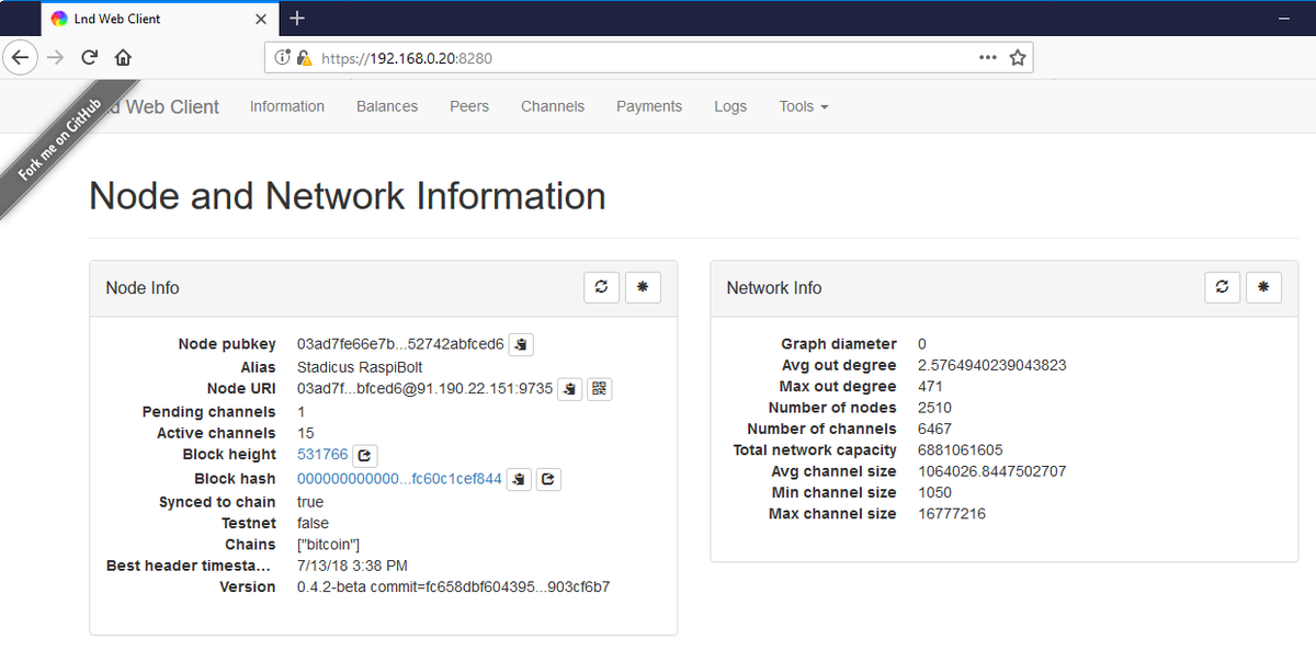 #Bitcoin full node with#LightningNetwork. Many thanks to@Stadicus3000 for the great tutorial, I've just tipped you $0.01 on https://mainnet.yalls.org/