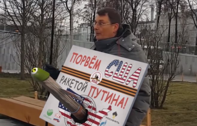Зато депутат госдумы Евгений Фёдоров может безнакзно ходить с плакатом в виде точащего фаллоса. И ведь, наверно, маленькие девочки мимо ходят. Но ни менты, ни психиатры этого имбецила не трогаютpic.twitter.com/a3n9HYA7Kk