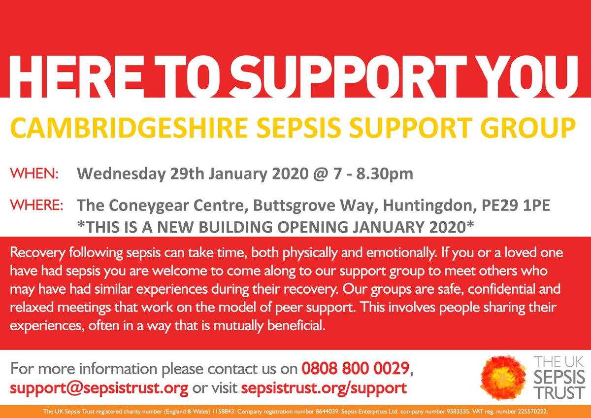 Please be aware that the location of the Sepsis support group this evening has changed, the group will now be meeting at The Medway Centre, Medway Road, Huntingdon, PE29 1SFhttps://twitter.com/NWAngliaFT/status/1222233630895820800 …