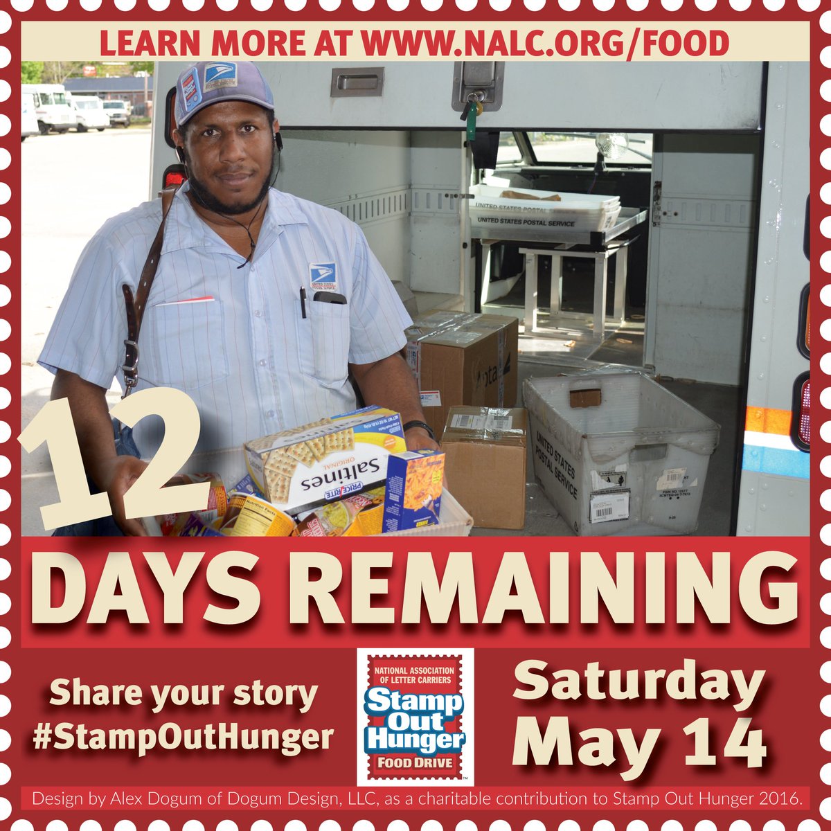 12 days till the Letter Carriers’ #StampOutHunger Food Drive: Sat., 5/14?