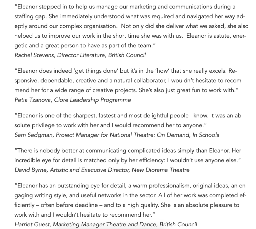 Hello folks! I have some capacity for new work at the moment: I am good at writing words, commissioning words, editing words, and helping people think things through and get stuff done. Testimonials, previous projects and contact details at http://eleanorturney.co.uk RTs appreciatedpic.twitter.com/skmlAmSvtA