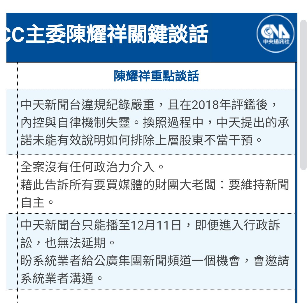 中天是因為新聞違規次數太多(股東干涉新聞自主),NCC不予換照,才離開的喔。 台灣政府不會干涉新聞台的開立與否。pic.twitter.com/rlXkwib6dh