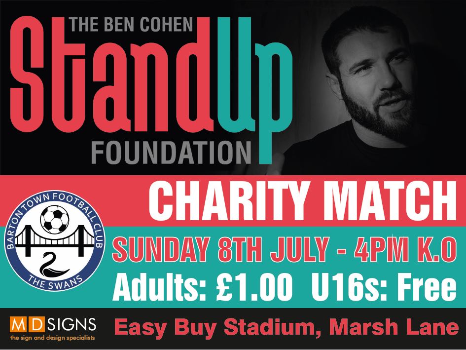 Barton Town FC are putting on a charity match to raise funds to tackle bullying. Please get down there on match day and support where you can. It's going to be a blinder!