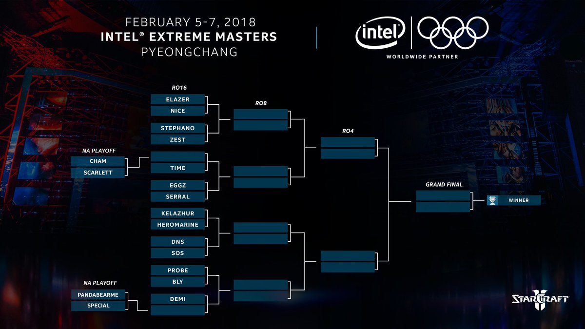 #IEM PyeongChang is live! Featuring @Smix @Kaelaris @Artosis @CallMeTasteless @RotterdaM08 @YoanMerlo @x5_PiG @nathaniastv @feardragon64 and @ZGGaming Starting with @Chamsc2 v @onfireScarlett and @pandabearmesc2 v @SpeCialsc2 > http://twitch.tv/esl_sc2  & http://twitch.tv/esl_sc2b pic.twitter.com/GCcMu2SbET