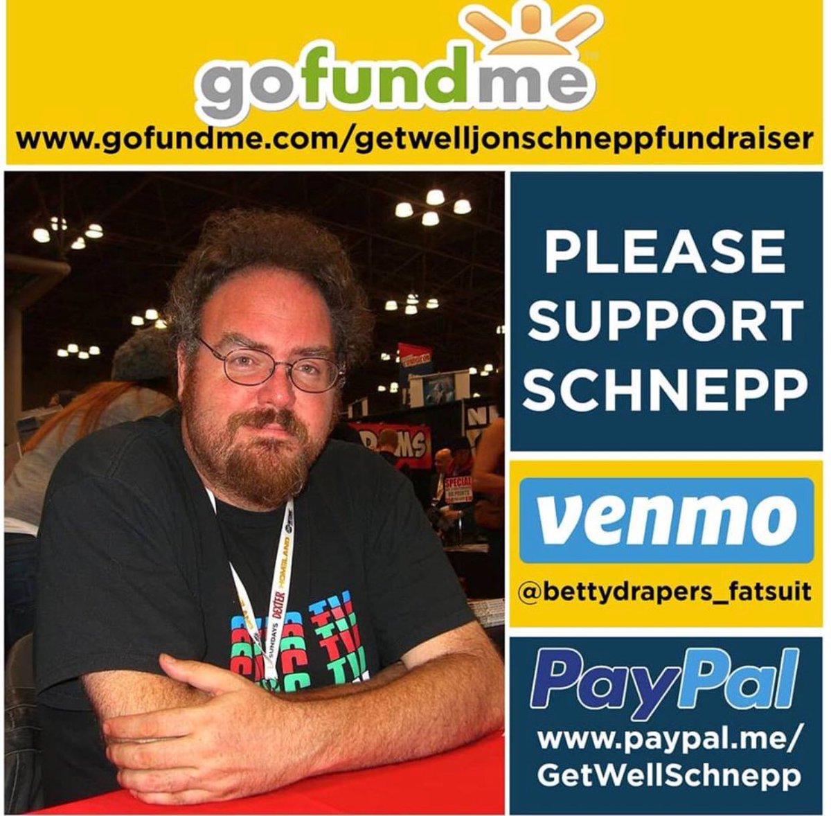 Please support Jon Schnepp Holly Payne and donate through one of these 3 platforms to help cover some of the mounting medical bills. Every little bit helps. https://www.gofundme.com/getwelljonschneppfundraiser … https://www.paypal.me/GetWellSchnepp pic.twitter.com/PqX76cZDkx