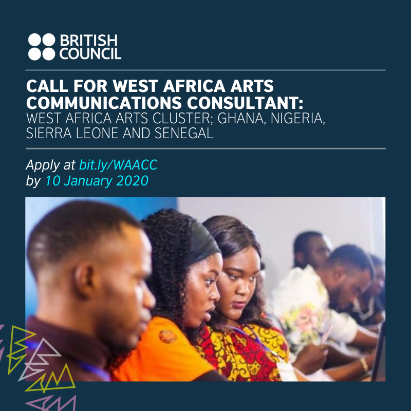 We're looking for a UK consultant to work with us in West Africa on a programme that will support creative/cultural organisations to increase their knowledge, capacity & confidence in partnership management & business development. Deadline is 27 Jan - please DM for more info.pic.twitter.com/tU81Vn4i9m
