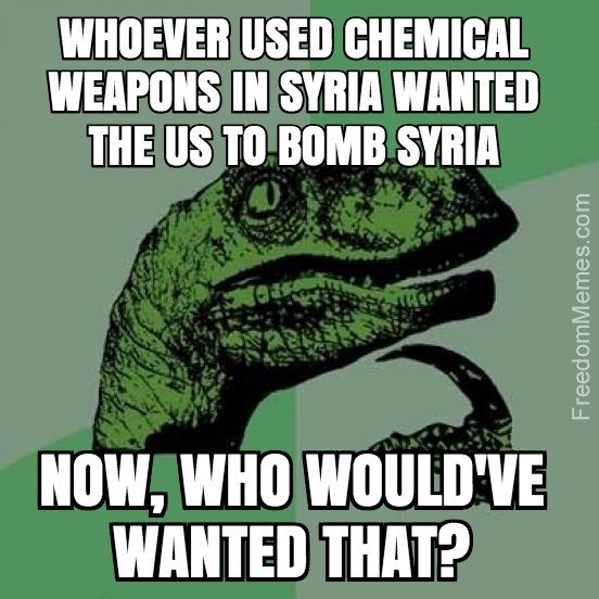 Every time the US is about to pull out, there's a mysterious chemical attack when allegedly doing fine with conventional weapons. Either you're being played by someone or you're in on it