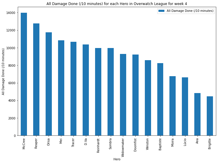 Same for all damage done for 10 minutes (time played > 30 minutes): - McCree is 1st with 13,967.5 - Reinhardt 7th with 9,958.3 - Widowmaker 9th with 9,282.8 - Moira 13th with 6,745