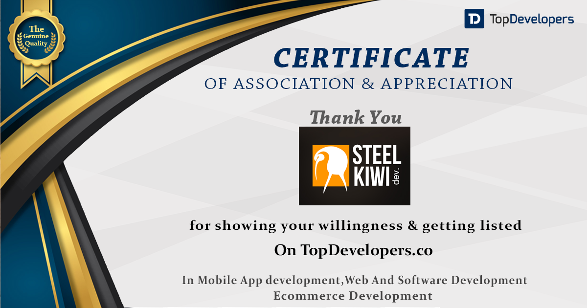 @SteelKiwiDev for getting listed on TopDevelopersco as an elite Web &#MobileAppDevelopmentCompany. http://ow.ly/6sOw30bqsD9 pic.twitter.com/WvLXBNnT99