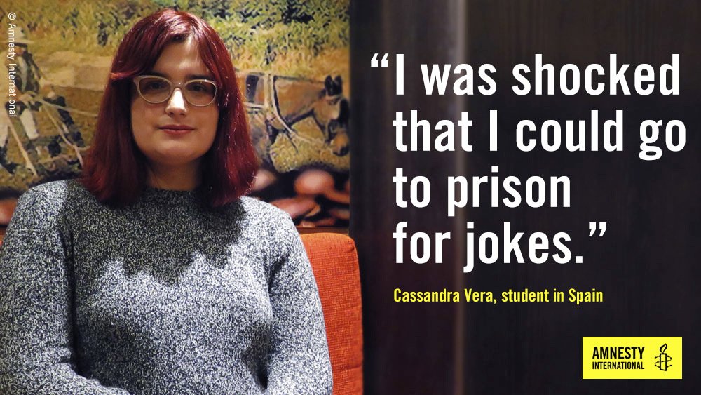 Last year Cassandra Vera, a 22-year old student, received a 1 suspended year jail sentence for Tweeting jokes about #Spain's fascist PM killed by ETA in 1973. Today she was acquitted by supreme court. @amnesty has a report on this & other cases on 13 March http://www.abc.es/espana/abci-tribunal-supremo-anula-condena-cassandra-tuits-sobre-carrero-blanco-201803011258_noticia.html …pic.twitter.com/rYiNGKIqsj