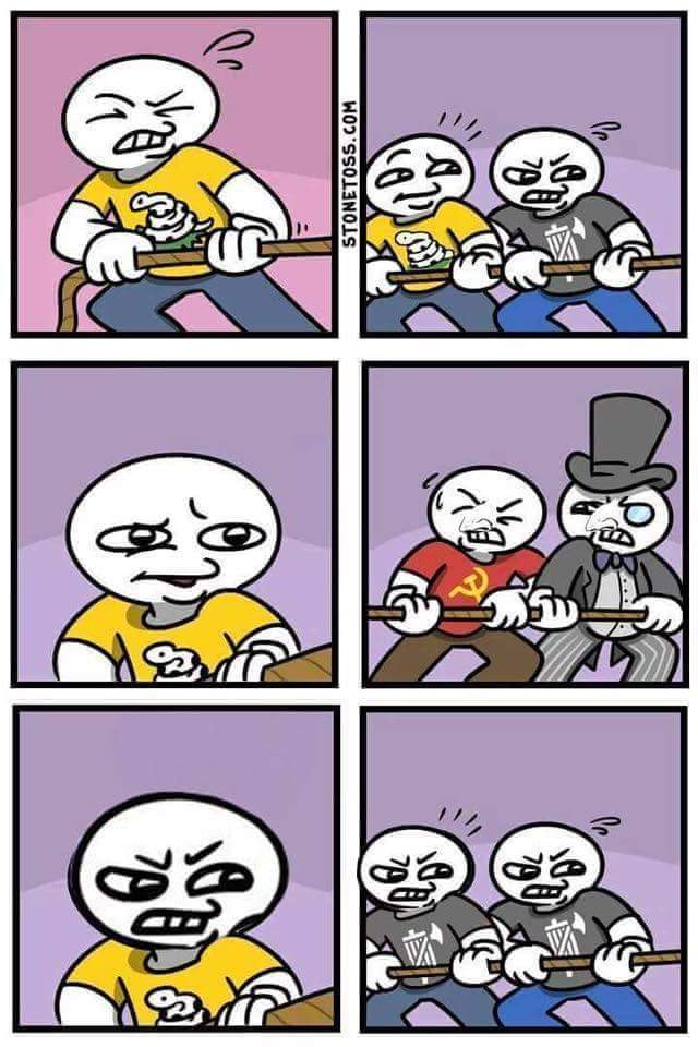 The top uses the bottom to defeat the middle.