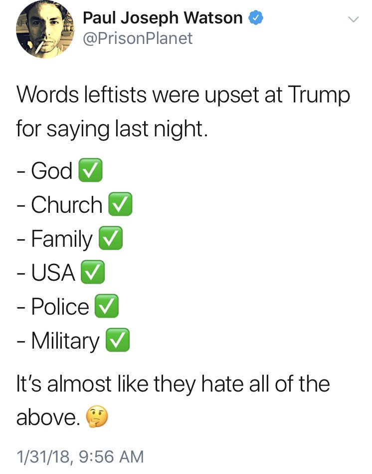 It's fascinating how many of the right-wing conspiracy theorists who used to identify as libertarians and make videos about the "Illuminati/NWO" are now authoritarian "alt-right" reactionaries who love Trump and talk about God, church, police, and militaryhttps://twitter.com/KyleKulinski/status/958723594686787584 …