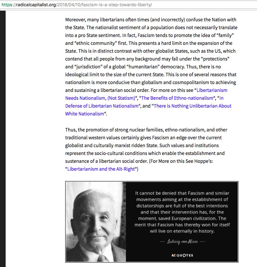 This racist libertarian-fascist nonsense quotes capitalist fundamentalist and Austrian School economist Ludwig von Mises, who praised genocidal fascism for "saving" "European civilization" — he meant "saved" from communism. Libertarians always side with fascists over socialists.pic.twitter.com/hE72RkVYkH