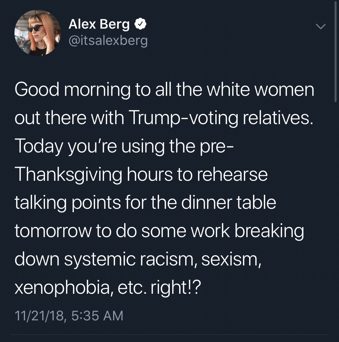 My mother taught me "If you don’t have something nice to say, don’t say anything" I stand by my mother’s words. I, too will have a foray of political differences at the Thanksgiving table. You just have to respect opinions,that’s all.