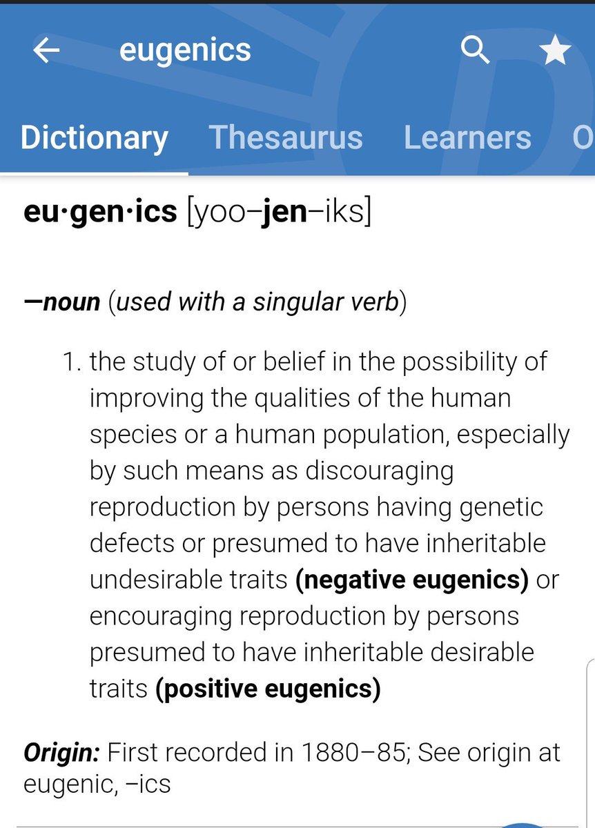 Abortion is Eugenics, introduced in it's evil, by Margaret Sanger whose ideas caused forced sterilization of the "unfit" in the 20s, but here's the definition:pic.twitter.com/PSZyIdHfyv