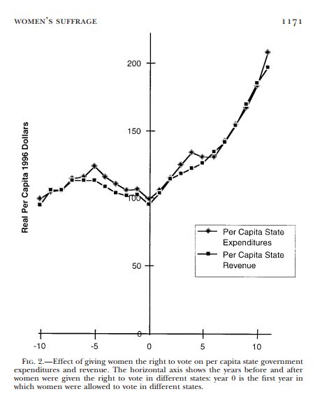 So the revenue and expenditure both climbed after suffrage. 0 benefit, 0 cost. Would be interesting to see the social impacts of it. Education, crime, value of employment, sorry to say that we’d probably find a devaluation and drop in standards as women’s rights rise.