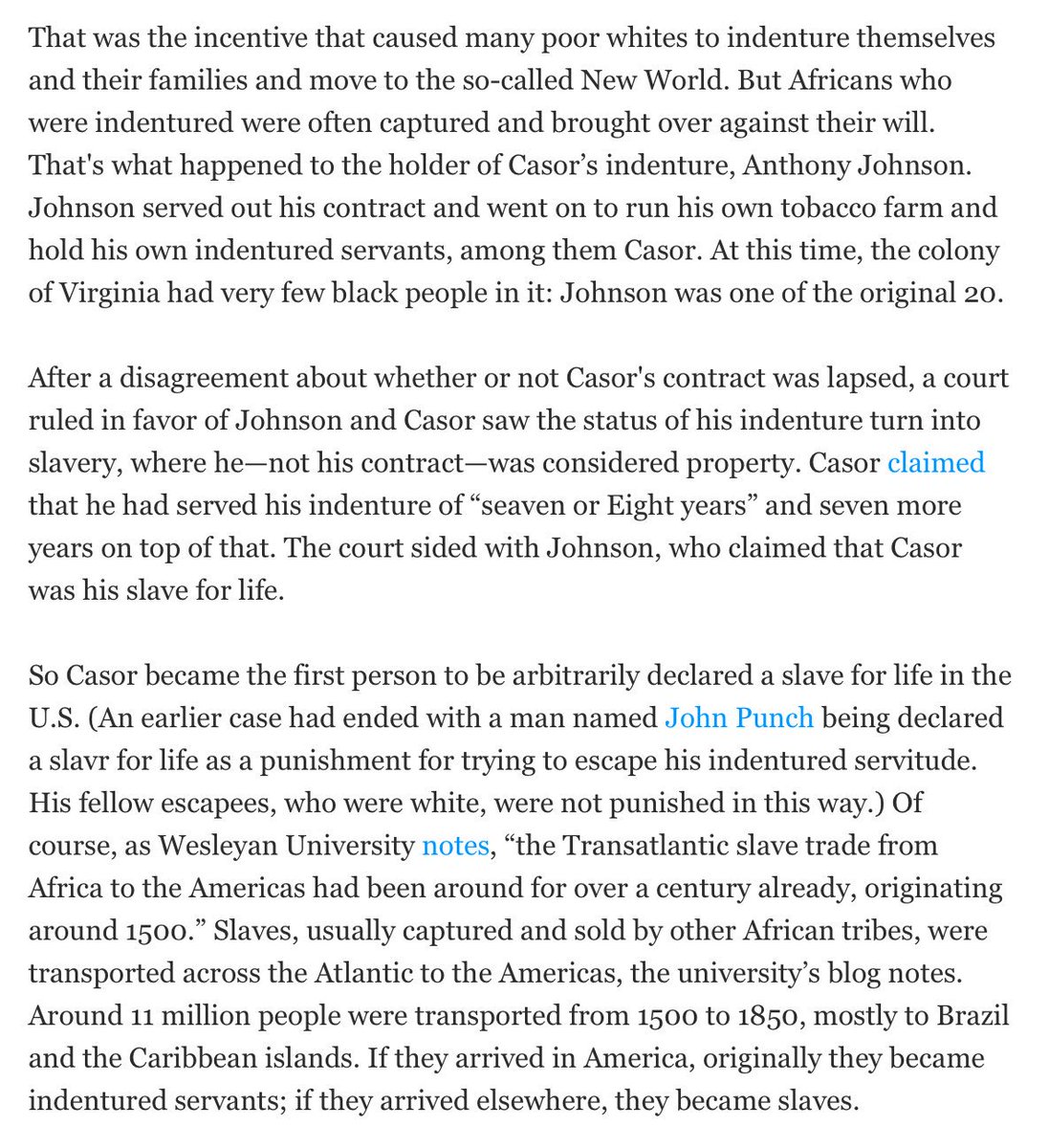 Stefan, you might want to encourage people to read this article very closely.https://www.smithsonianmag.com/smart-news/horrible-fate-john-casor-180962352/ …