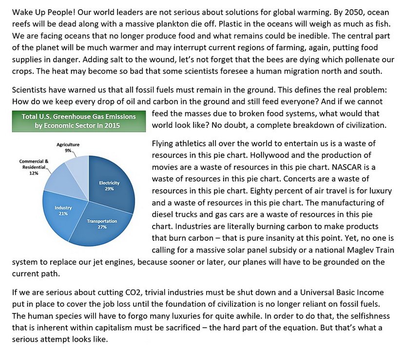 If we are serious about global warming, then the age of entertainment is over. We waste a lot of energy on entertaining ourselves. Are we to entertain ourselves into self-extinction?pic.twitter.com/edlYHPjlz5