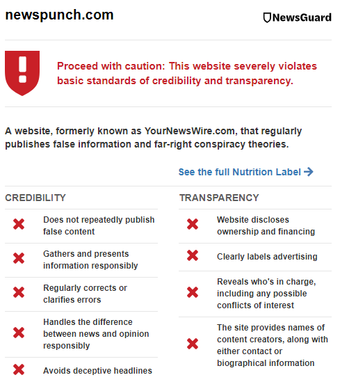 NewGuard is pretty lenient. But News Punch failed all on all points. Extreme right wing is as bad as Extreme left wing, IMHO, they meet on the bottom of a circle. Best to be moderate or centrist in this world. Then you can solve problems and avoid hate.