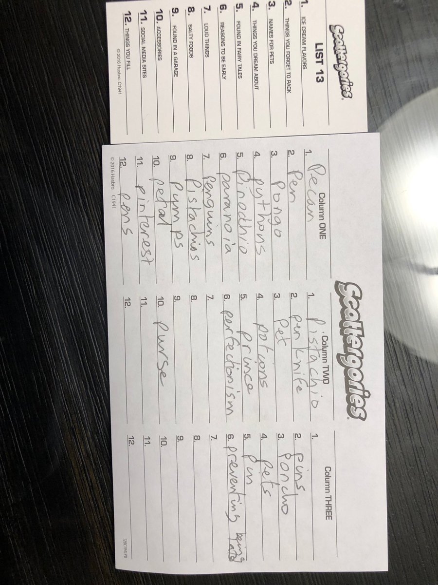 We played cathegories in our school days but we had like 10 cathegories!! From countries, name, cigarettes brands, fruits, flowers... bla bla bla... That was huge fun!