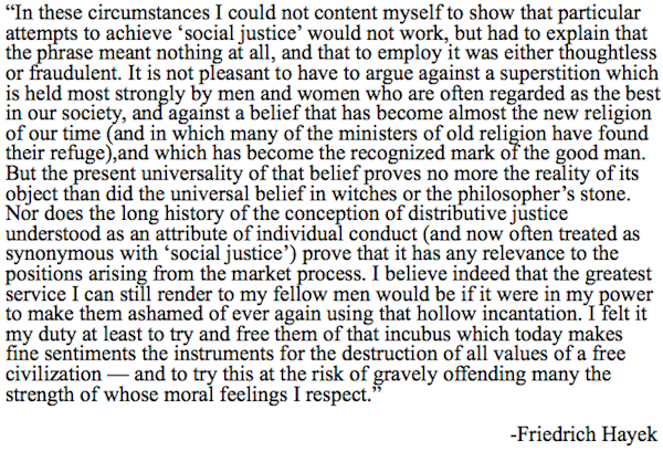 "I believe indeed that the greatest service I can still render to my fellow men would be if it were in my power to make them ashamed of ever again using that hollow incantation [social justice]." -Friedrich Hayekpic.twitter.com/6uANuon2am