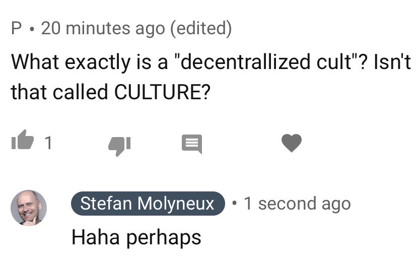 a decentralised cult surrounds the centralised cult, and the centralised cult cannot handle it, and of course, the centralised cult is the mainstream liberal consensus